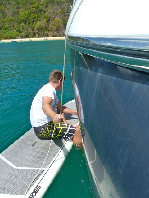 | Glenn cleaning off barnacles - and it is supposed to be a day off work! |
